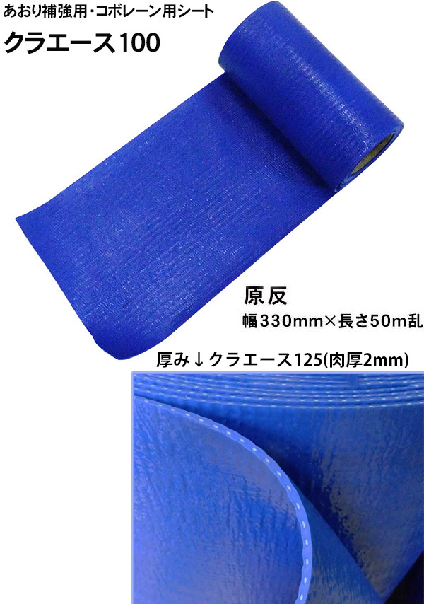 マルヤマキャンバスでは、このクラエースをコボレーンシートやアオリガードシートに加工して販売している他に、クラエース自体の販売も行っています。 原反(50m乱/30m乱)はもちろん、1m単位での切売りも承っています。よく使用されるクラエース200(幅660mm・肉厚2.2mm)はブルーに加えてレッド・ブラック・グレー・グリーンの全部で5色があります。 クラエースにご興味がおありでしたら、ぜひマルヤマキャンバスにお問合せ下さい。